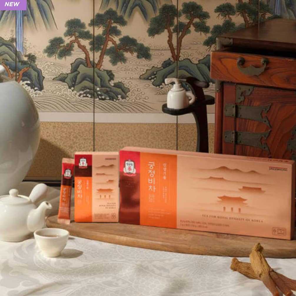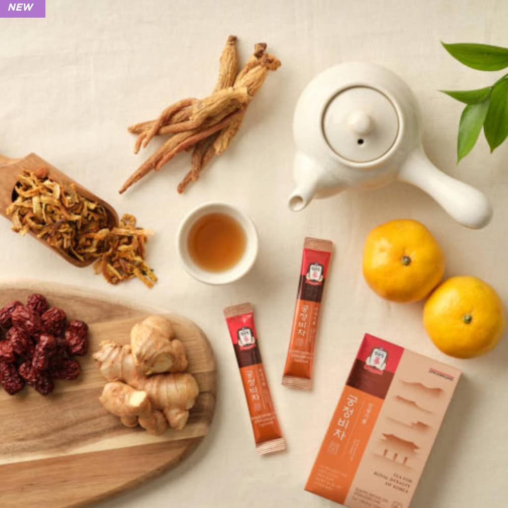 A royal-inspired instant powder tea from CheongKwanJang, blending 6-year-old Korean Red Ginseng with dried citrus peel (jinpi), jujube, and ginger, finished with a hint of natural citrus flavor. Designed for an energizing daily cup—fragrant, cozy, and easy to prepare.