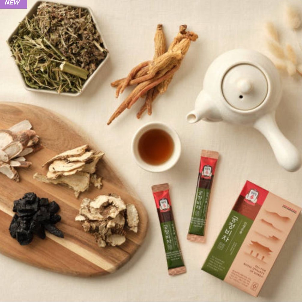 A royal-inspired powder tea from CheongKwanJang that blends 6-year-old Korean Red Ginseng with time-honored herbs—including mugwort, motherwort, peony, angelica, cnidium, and rehmannia. Designed from motifs in Joseon Dynasty records, this balanced “warmth” blend is easy to dissolve and enjoy as a daily soothing ritual.