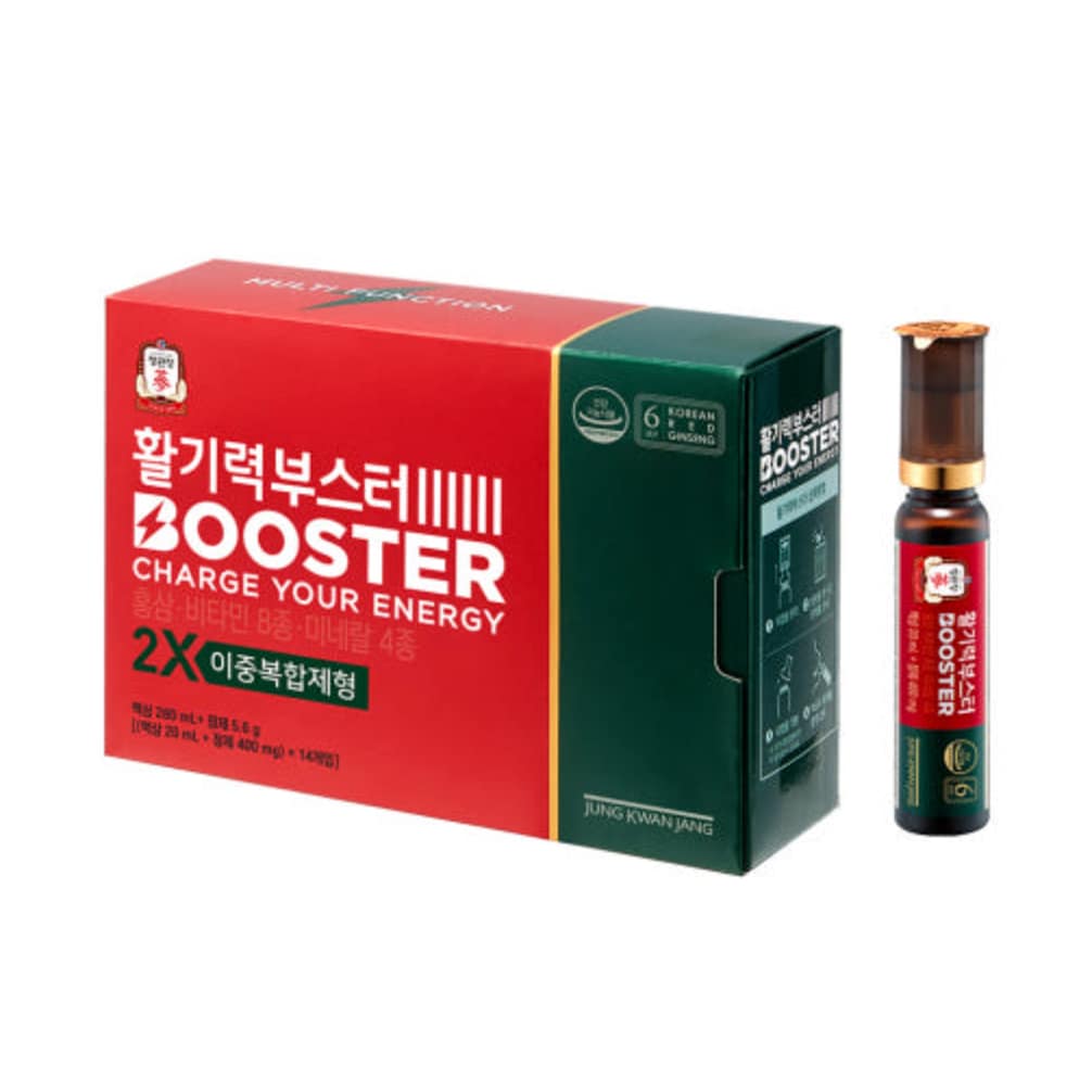 Power up your day with Vitality Booster, a convenient Korean Red Ginseng shot designed for quick, clean energy support. Each bottle features premium 6-year-old red ginseng extract complemented by a modern nutrient blend for daily vitality, focus, and stamina—anytime, anywhere.