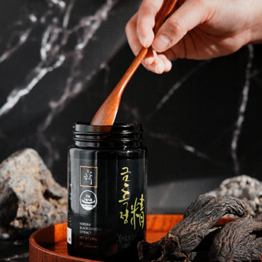 GeumHeuk Black Ginseng Extract 100% is a premium concentrate crafted exclusively from nine-times-steamed-and-dried Korean black ginseng. Produced with a 48-hour low-temperature extraction method, it preserves the maximum active compounds while delivering the deep, smooth flavor of authentic black ginseng. With no additives, fillers, or preservatives, this extract provides trusted support for immunity, fatigue, circulation, memory, and antioxidant defense.