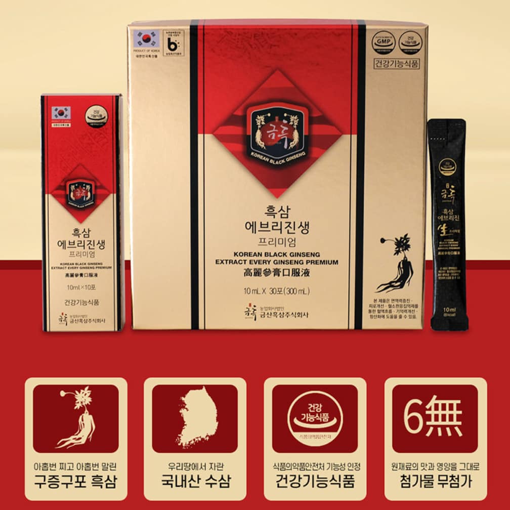 Main Ingredients: 100% Korean black ginseng extract (Gujeung-Guppo, 9× steamed & dried) + purified water.