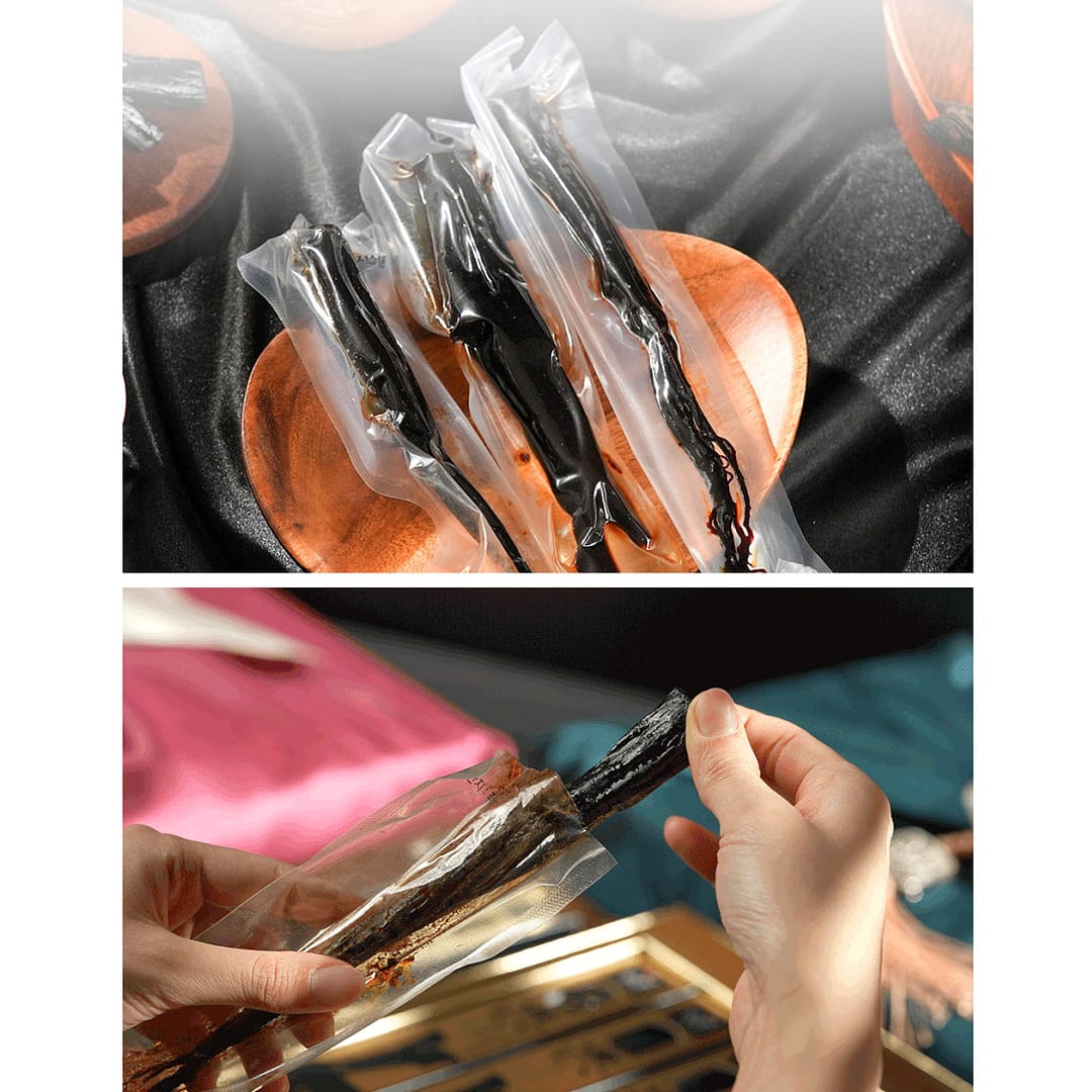 Format: Ready-to-eat whole-root black ginseng, individually vacuum-packed