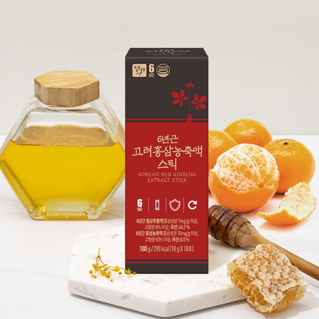 Classic 6-year Korean red ginseng in a smooth, ready-to-go stick. Made with Korea-grown red ginseng extract and enriched with domestic honey and Korean tangerine concentrate for a richer taste, this HACCP-certified formula delivers a bold yet approachable ginseng experience—perfect for daily wellness or thoughtful gifting.