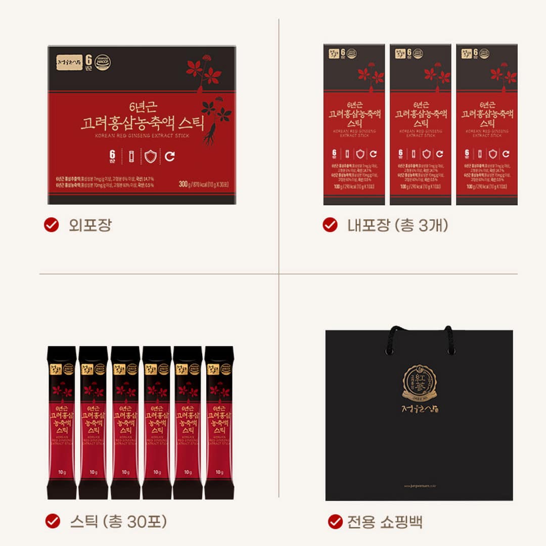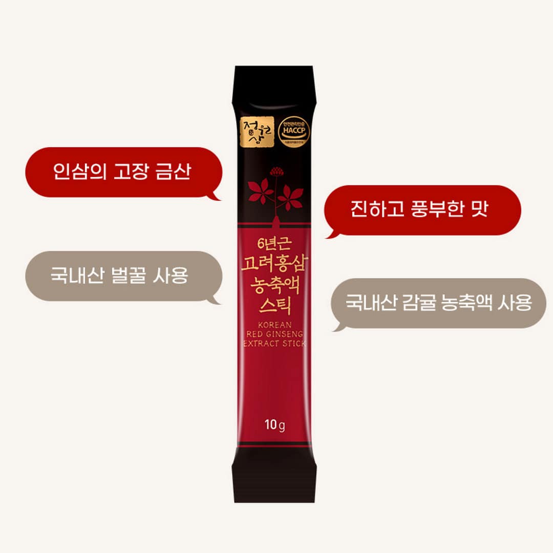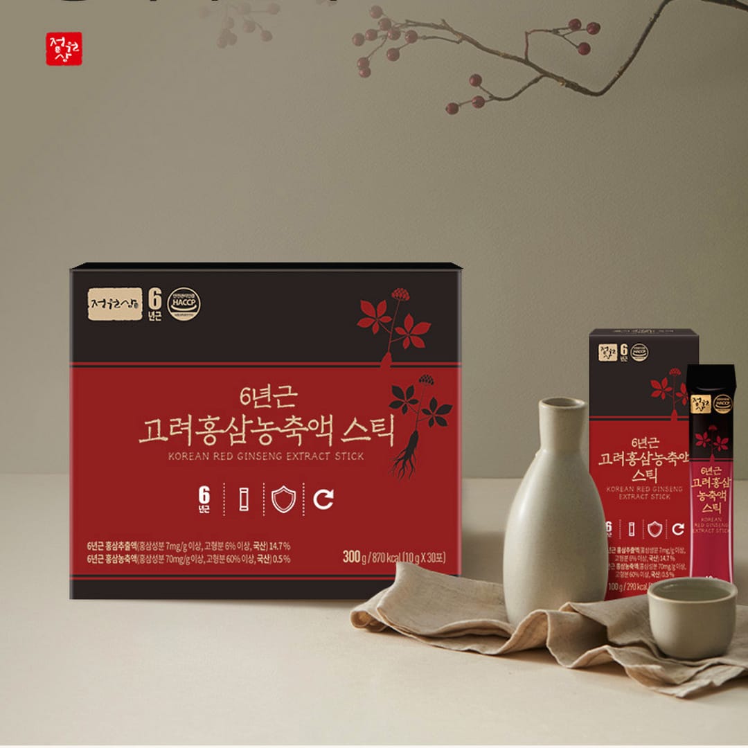 Classic 6-year Korean red ginseng in a smooth, ready-to-go stick. Made with Korea-grown red ginseng extract and enriched with domestic honey and Korean tangerine concentrate for a richer taste, this HACCP-certified formula delivers a bold yet approachable ginseng experience—perfect for daily wellness or thoughtful gifting.