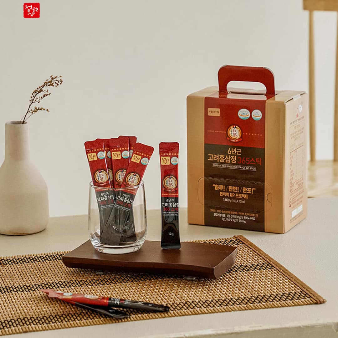 A convenient daily stick made from 100% Korea-grown, 6-year-old red ginseng concentrate—balanced with seven traditional botanicals and a touch of honey. Designed for an easy one-stick-a-day routine (about 12 kcal per stick), this large 100-count pack keeps you and your family supplied for over three months.